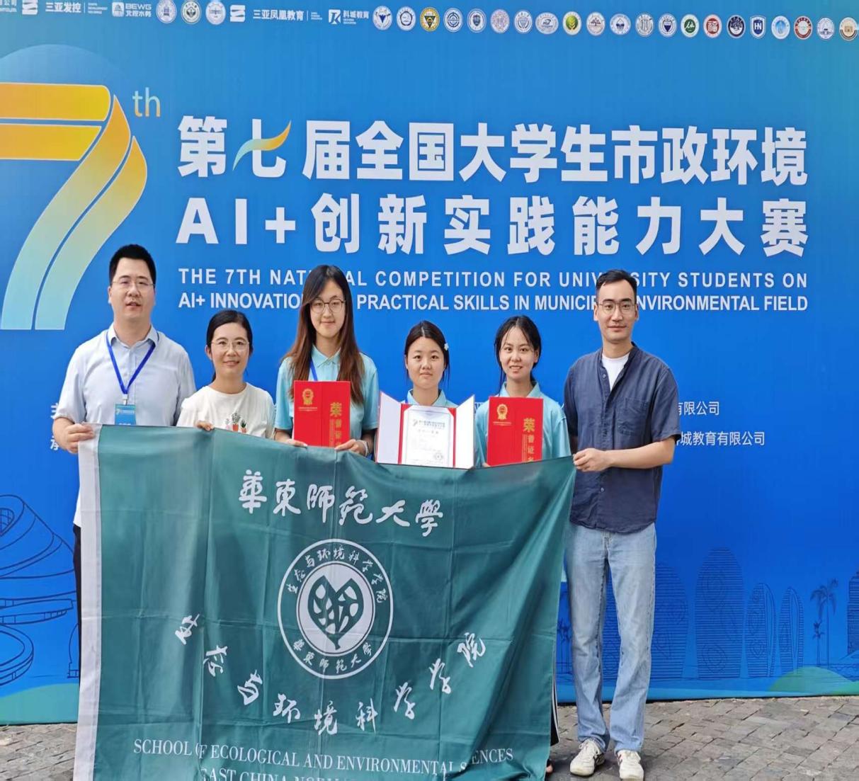 2023级环境生态工程专业谢欢欢、苗怡爽和环境科学专业张冰然同学在决赛中发挥出色,成功斩获全国一等奖,创下我校在该项赛事中的历史最佳成绩。指导教师秦荷杰、王维康获评“金牌指导老师”。第七届全国大学生市政环境AI+创新实践能力大赛参赛作品团体一等奖证书答辩与采访现场赛后,三名参