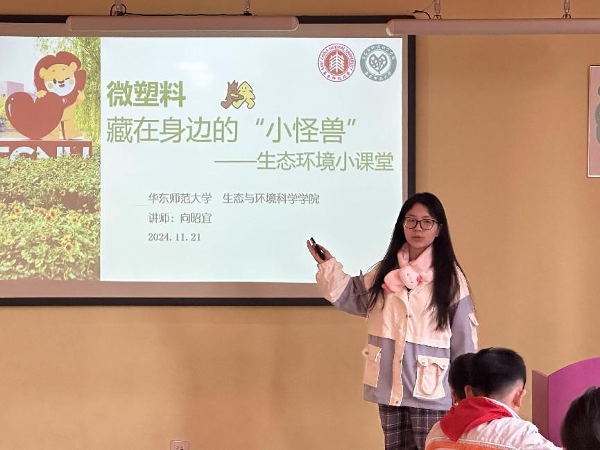讲师周杨睿讲解微塑料的定义与性质 讲师王邓祥向同学们介绍微塑料的三种降解方法