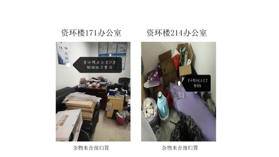 在本次检查的所有实验室中,资环楼126情况最佳,资环楼448室情况最差。本次实验室检查的主要问题为杂物堆放。