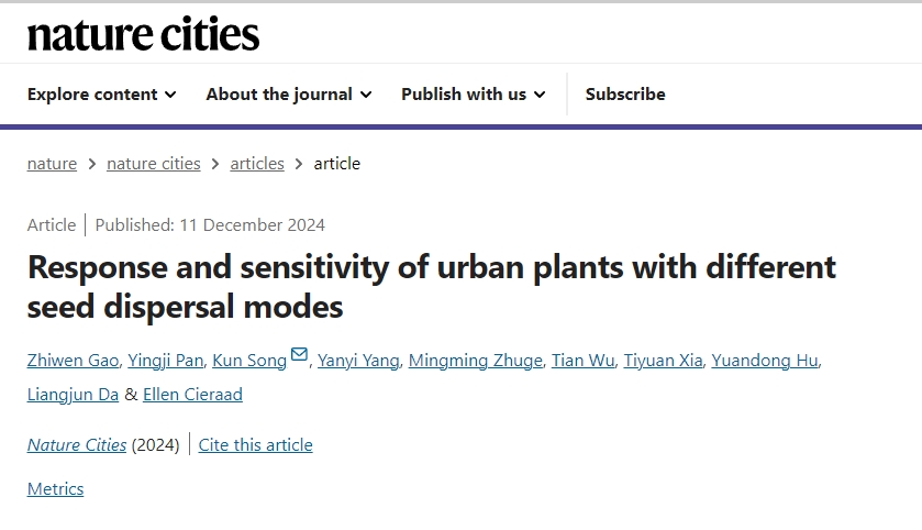 澳门六合彩开奖记录资料-澳门六合彩开奖结果走势图 达良俊与宋坤研究团队,在Nature Cities上发表了题为“Response and sensitivity of urban plants with different seed dispersal modes”的研究论文,揭示了不同种子传播方式的自生植物的物种丰富度的影响因素及其敏感性差异,为阐明城市植物多样性维持机制提供了新的理解。华东师范大学宋坤(副教授)为论文的通讯作者,华东师范大学高志文(博士后)为论文的第一作者,中科院东北地理与农业生态研究所研究员潘应骥为论文第共同一作,合作作者单位包括:西安建筑科技大学、东北林业大学、昆明澳门六合彩开奖记录资料 、新西兰Nelson Marlborough Institute of Technology。