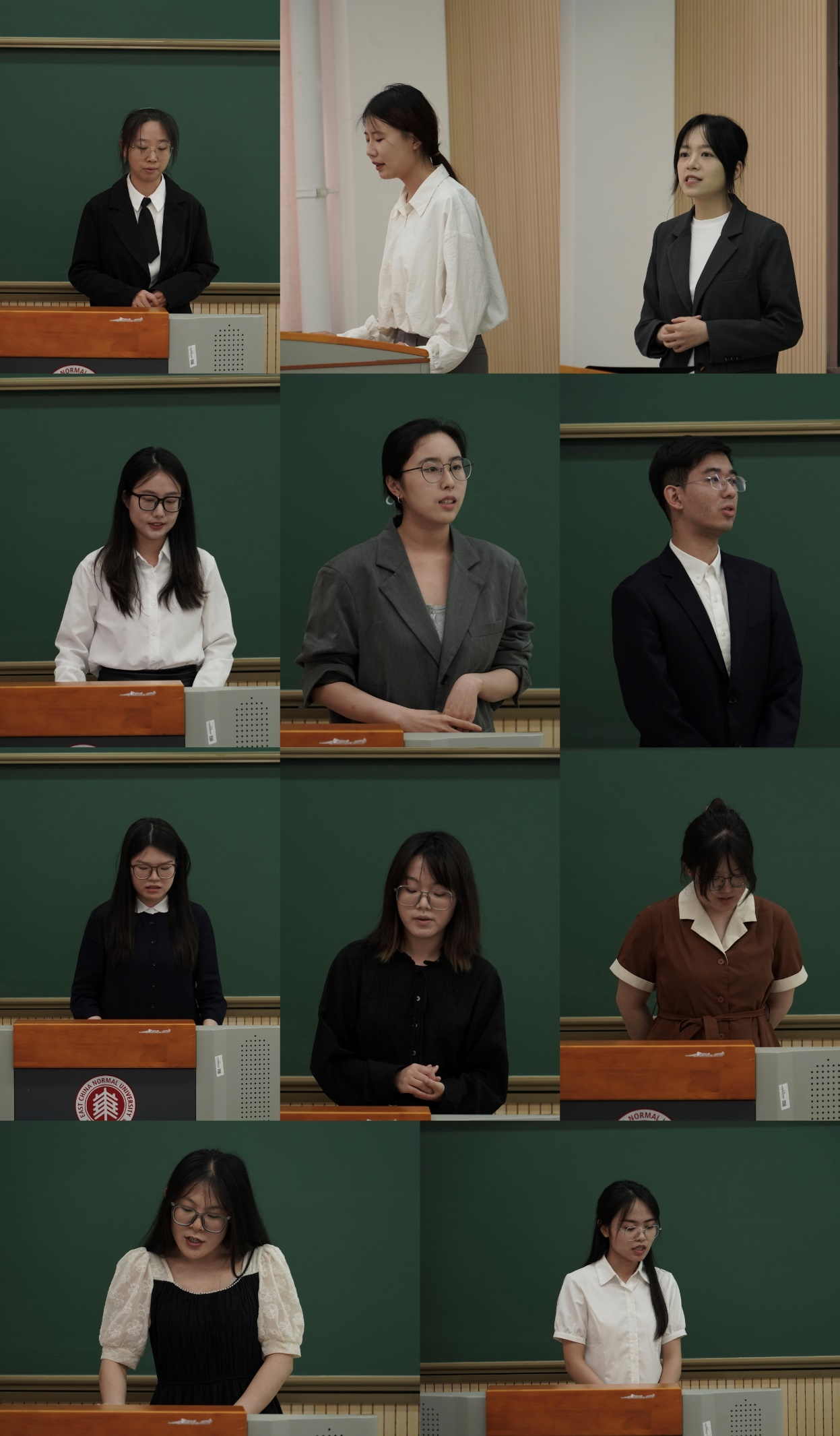 之后的竞选环节,第十一届生环研会主席团候选人们依次发表竞选演讲,并接受老师和学生代表们的现场提问,候选人发言顺序为曾珂、郁梦媛、卢子君、张恂、孙语阳、王星宇、王晨雅、向韦悯、陈子萌、胡雪琦、陆依雯。他们分别就自己对研会工作的认识、过去一年积累的经验和取得的成绩,未来工作的规划与畅想等方面进行介绍。