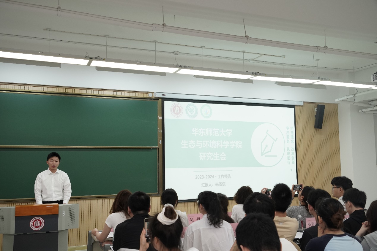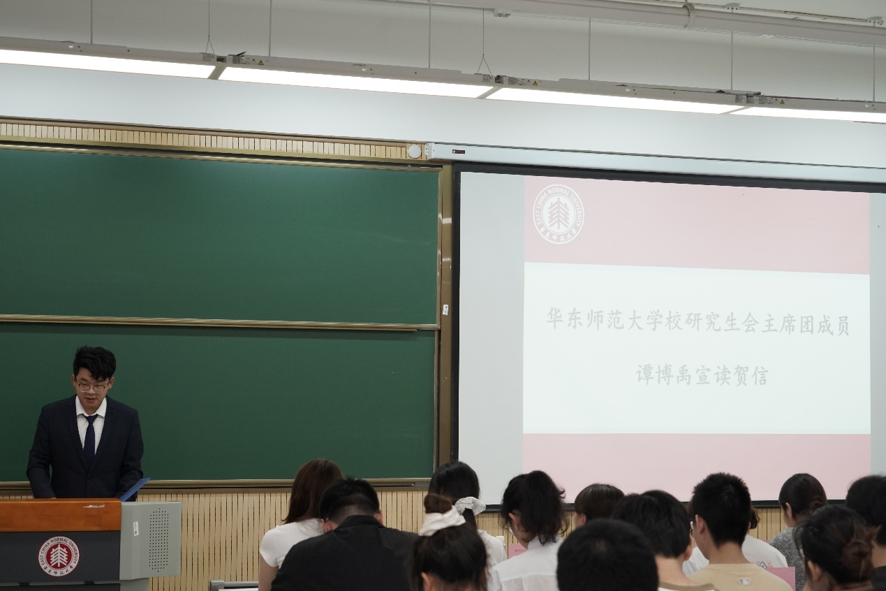 华东师范大学研究生会主席团成员谭博禹宣读贺信,他对生环研会在学校活动中的积极参与和取得的丰硕成果表示赞扬和祝贺,并对未来工作中的进一步团结协作寄予了新的期待。