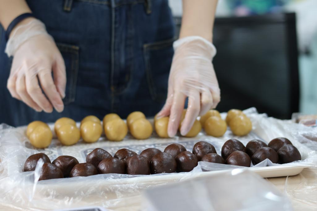 同学们认真制作月饼