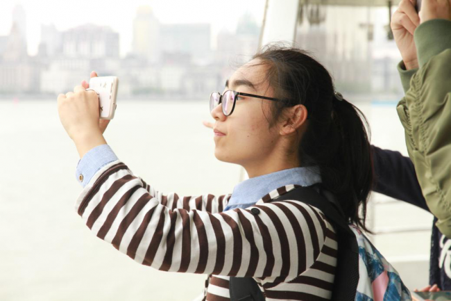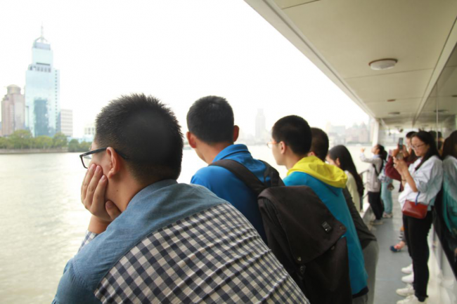 一上船同学们都被陆家嘴的高楼大厦所吸引,代表魔都的四座标志性建筑——东方明珠塔、金茂大厦、上海环球金融中心、上海中心,它们是中国改革开放的象征和上海现代化建设的缩影。