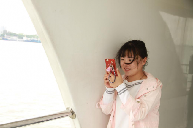 一上船同学们都被陆家嘴的高楼大厦所吸引,代表魔都的四座标志性建筑——东方明珠塔、金茂大厦、上海环球金融中心、上海中心,它们是中国改革开放的象征和上海现代化建设的缩影。