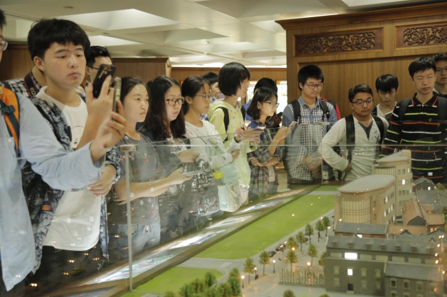 在外排队等待进入场馆的同学们,仔细聆听、记录柳林老师和张勇老师对于上海的介绍。“与西安、开封这种历史古都相比,上海应该算是一所比较年轻的城市,”柳林老师说道:“1840年开沪,这等于是上海发展的一个起点。在场馆中,我们会看到许多历史的进程以及相关的历史的图片,包括外滩、原先的租界。”经柳林老师这么一说,同学们对于上海市城市规划展示馆中的内容愈发地好奇了,因此也愈加加快了进入场馆地脚步。