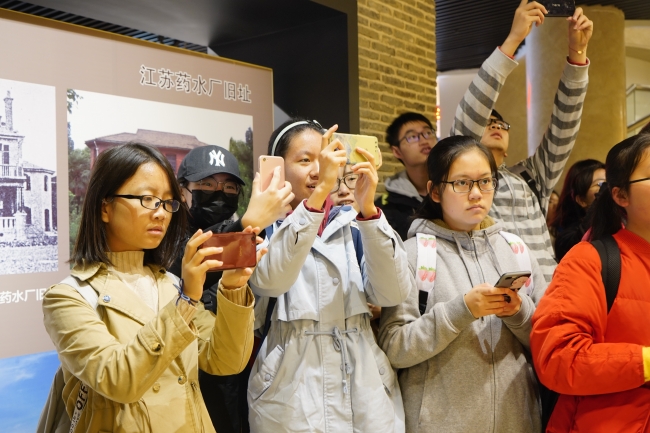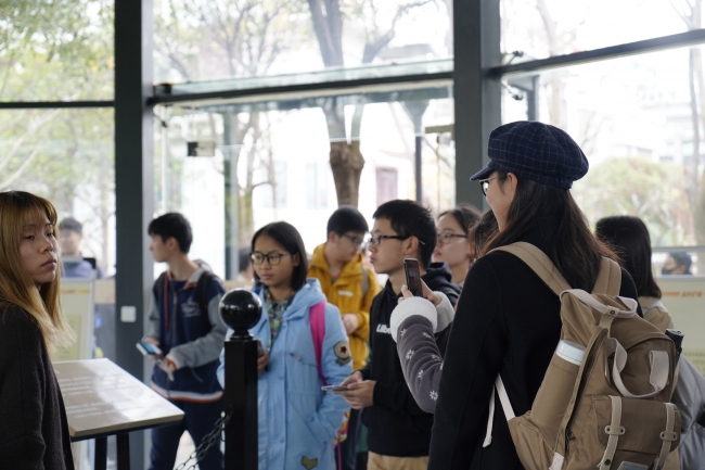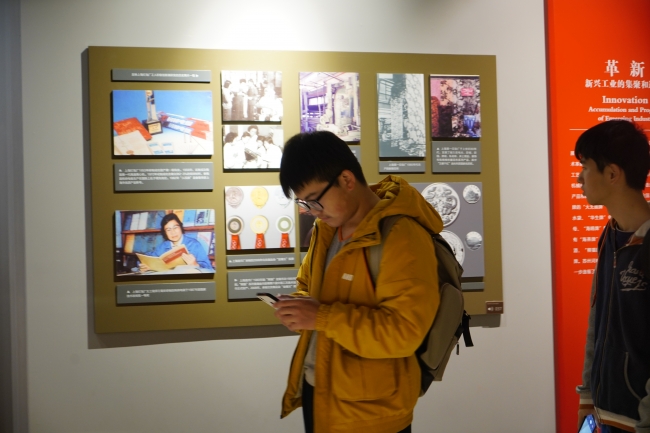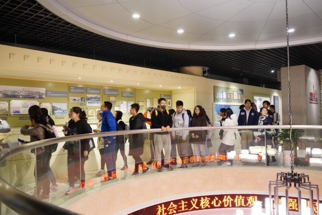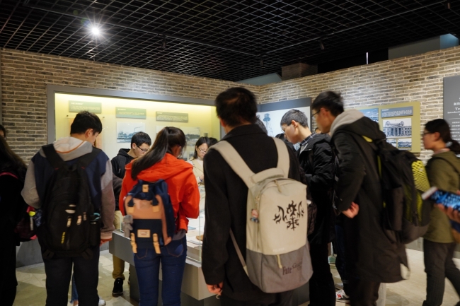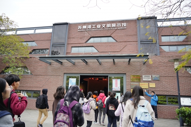 在讲解人员的带领下,同学们开始了苏州河工业文明展示室内馆的参观。室内展示面积约800平方米,以丰富的文物展品、多样的展示手段,以历史为时间轴、以苏州河为空间轴,再现了上海开埠至今苏州河沿线工业文明的风雨历程和辉煌成就。