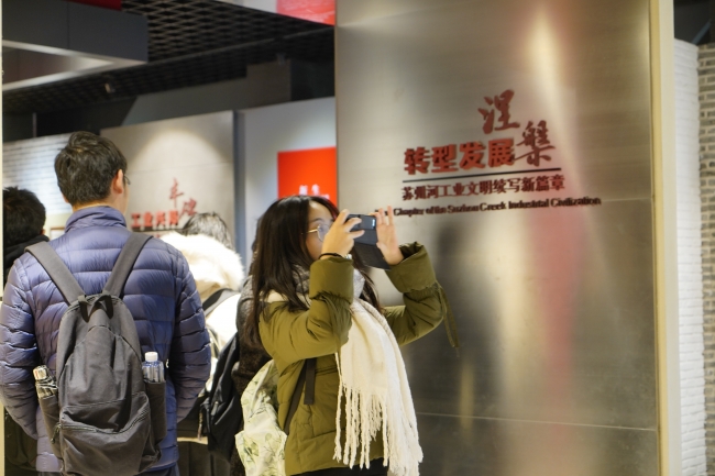 参观过程中,根据展馆内的照片与陈列及讲解人员的介绍,我们可以了解到苏州河见证了上海这座东方大都市的发展的漫长历程,承载了中国近现代文明进程的灿烂成果。展示厅分“先河:开放兴业——苏州河近代工业的兴起”、“摇篮:实业救国——中国民族工业在苏州河畔崛起”、“丰碑:工业兴邦——苏州河工业文明的新成就”、“涅槃:转型发展——苏州河工业文明续写新篇章”四个部分,通过参观我们体会到在城市的发展过程中,这些工厂已经逐渐成为历史足迹,但却给苏州河带来了严重水质污染。因此,水质治理也成为了苏州河在绿色文明或生态文明时代重获新生的起点。