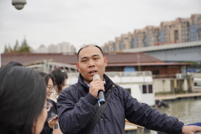 张馆长还特别讲起了他与华东师范大学环境科学系多年来愉快而有成效的合作,在讲解中穿插了水质监测、底泥污染治理、码头搬迁等华师大参与过的治理项目,还结合苏州河与黄浦江的感潮河流模型向大家介绍苏州河去除黑臭的工程,并且耐心详细地回答了同学们的问题。张效国先生的亲自讲解与热情接待,给一年级的新生们上了极为深刻的一节环保启蒙课,让大家对本次苏州河水环境实习留下了难忘的回忆。