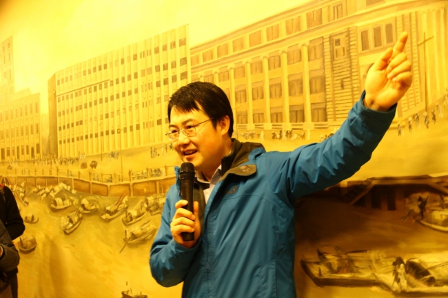 下午一点半,大家从中北校区出发前往苏州河梦清园水环境治理展示中心。展馆共分三层,一楼为序厅“印象苏州河”,主要介绍了苏州河的地理位置及上海的水利系统;二楼以“污染沉重的代价”为主题,图文并茂地向大家展出了古代和近代苏州河的污染情况及污染造成的危害;三楼为“未来苏州河”,展出了近年来苏州河治理过程和治理成效。到达梦清馆,王文佳助教先在馆外为大家介绍了梦清馆的大致情况,在馆内由苏州河梦清馆名誉馆长张效国先生为我们讲解。张效国先生早在1978年就开始参与了苏州河的整治工作,长期在市苏州河治理办公室、市环境保护局担任领导和技术职务,亲身经历了苏州河污染治理的全过程。在张效国先生的带领和热情讲解下,大家依次进行了参观全部展厅。他亲身参与了苏州河污染治理项目从立项到完工的全过程,对苏州河黑臭的历史印象深刻感慨良多,详细讲解了苏州河的历史、沿岸的城市发展与变迁、苏州河三期治理的具体开展情况。此外,张勇老师也在张馆长的讲解的基础上,给大家介绍了许多有趣的内容与小故事。