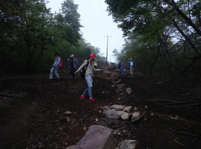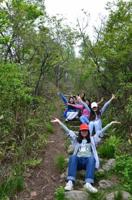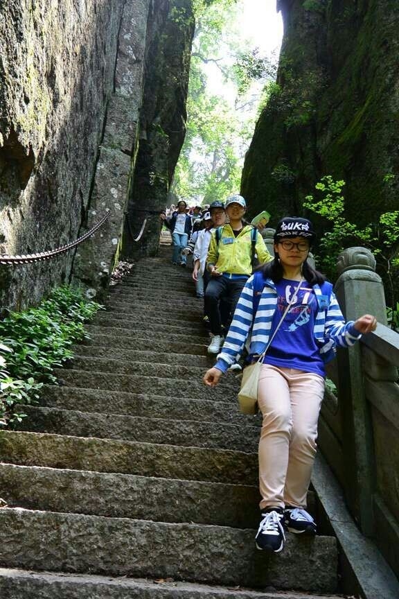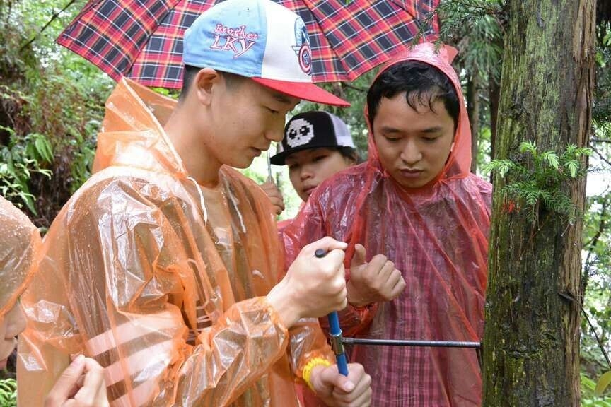 学生在天目山仙人顶观测山顶矮林的典型特征