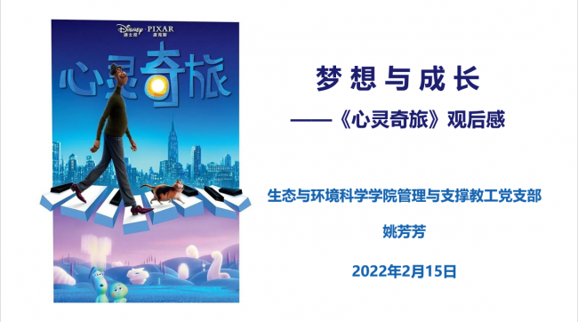 在《梦想与成长——观<心灵奇旅>有感》中,姚芳芳老师分享了电影《心灵奇旅》里梦想成为爵士钢琴家的乔伊·高纳与厌世的灵魂22相遇,携手返回现实世界寻找生命的意义的故事。姚老师结合马斯洛需求层次理论,和自己五年的学习钢琴的经历,跟随故事的主人公一起走进心灵深处,探索生命的火花、生活的价值、以及如何实现自我。人生的意义来自实现梦想过程中的成就和喜悦感,也来自平凡生活中的小确幸。我们需要为梦想而努力,也需要热爱生活、珍惜生命的每一天。最后,姚老师结合影片分析了如何做孩子的心灵导师。她认为带领孩子体验生活比单纯的教诲和灌输更有效;否定和打击会让孩子失去生命的火花;认可孩子的情绪比和孩子“硬碰硬”更重要;同时父母要学会接受孩子的平凡,不对结果与目标抱有执念,父母更应该重视陪伴以及和孩子的共同成长。