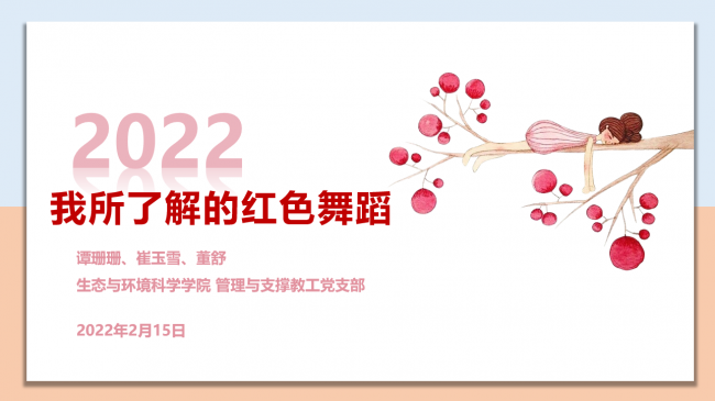 管理与支撑教工党支部举办第三场寒假学习分享主题活动,分享人是董舒、谭珊珊、崔玉雪、姚芳芳、宋萌和杨海波老师。董舒、谭珊珊、崔玉雪三位老师组成小组,分享的主题是《我所了解的红色舞蹈》;姚芳芳老师分享的主题是《梦想与成长——<心灵奇旅>观后感》、宋萌老师分享的主题是《传承与突破——感受2022年北京冬奥会》、杨海波老师分享的主题是《人类群星闪耀时读后感》。