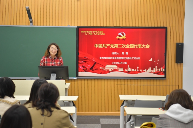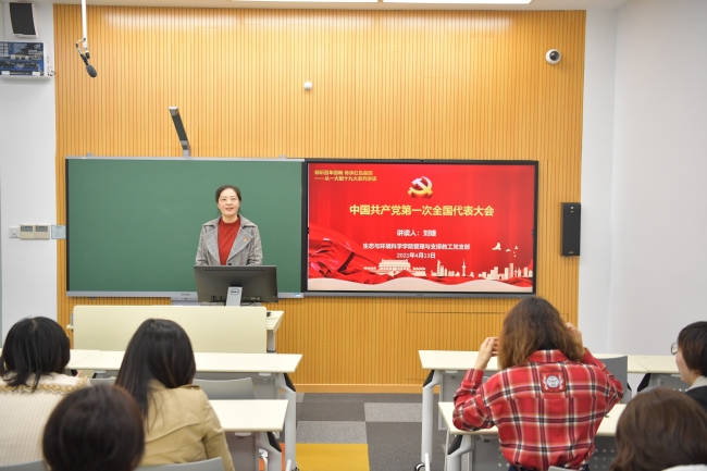 党委书记刘婕讲读“从红船精神中汲取奋进力量——中共一大历史回顾”。在微党课第一部分,刘老师从中共一大召开的背景、会议的议程和取得的成果详细阐述了中共一大的来龙去脉。在会议背景环节,刘老师运用图片和简要文字讲述了从20世纪初的军阀割据到陈独秀创办《新青年》,从俄国十月革命一声炮响到北京爆发学生群众的“五四运动”,推动了马克思主义在中国的广泛传播,促进了共产党小组或支部的诞生。在会议议程和成果环节,刘老师带领大家共同回顾了中共一大的筹备与召开过程、大会通过的党的第一个纲领和第一个决议的重要作用,阐明了中共一大的重要历史意义。在微党课第二部分,刘老师结合管理与支撑岗教师的实际工作,分析了“红船精神”所蕴含的伟大思想和时代价值,结合管理与支撑岗的工作实际,带领大家思考和分析如何从“红船精神”中汲取奋进的力量,在实践中弘扬“红船精神”所蕴含的首创精神、奋斗精神和奉献精神。刘老师结合管理与支撑岗教师如何在学校卓越育人工作中发挥作用的思考,分析了新形势下对管理和支撑岗教师的更高要求,勉励大家要树立爱岗敬业的精神,加强政治思想修养,不断丰富管理理论知识,增强统筹协调和学习研究的能力,成为“管理理念的创新践行者”、“管理事务的主动承担着”、“管理改革的有力推行者”。