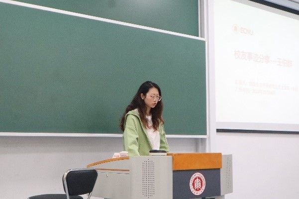 活动第二部分,同学们来到群贤堂(文史楼)111教室继续开展主题活动。生态学专业的景甜甜和环境科学专业的彭铖,作为学生代表依次上台进行优秀校友事迹分享,他们分别介绍了我校两位杰出校友王伯群和郭大力的故事。王伯群先生是我国近代民主革命的先驱者和政治家,也是我国现代教育的开拓者和爱国教育家。1924年,王伯群先生慷慨捐资创办大夏大学,并被公推为董事长。自此,他除参与政治活动之外,后半生全力投入大夏大学的建设、发展和繁荣上。他曾借鉴牛津、剑桥大学的管理经验,在国内高校中率先实行“导师制”,广招贤才,实施博雅通识教育,探索高等教育的现代化管理,为现代高等教育发展积累了丰富的经验。当时,华东师范大学被誉为“东方哥伦比亚大学”。