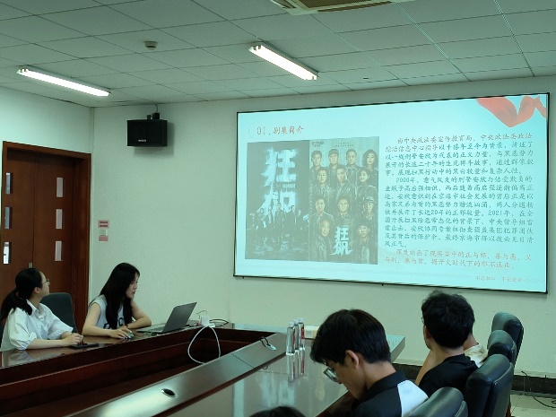 活动第二部分,由王梓睿带大家回顾《狂飙》这一影视作品。这部作品是由中央政法委宣传教育局、中央政法委政法综治信息中心指导的,以千禧年至今为背景,讲述了以一线刑警安欣为代表的正义力量与黑恶势力展开的长达二十年的生死搏斗故事,通过群像叙事,展现扫黑行动中的黑白较量和复杂人性。剧中的安欣作为一名年轻的刑警,充满了正义感和使命感。他努力工作,希望能够为社会的安宁和正义贡献自己的力量。在与高启强等黑恶势力的斗争中,安欣经历了无数的挫折和磨难。但他始终没有放弃,而是更加坚定了自己的信念和决心。该部影视作品深度刻画了现实当中的正与邪、善与恶、义与利、廉与贫,揭开了大时代下的邪不压正。她提到,扫黑除恶要老虎苍蝇一起打,重要的是把保护伞端了,要把腐败的根挖出来,作为党员自身也要洁身自好,不能被腐蚀。通过这部作品,也可以看出党和国家在治理腐败问题、扫黑除恶专项斗争中的决心和力度,我们对党有信心。