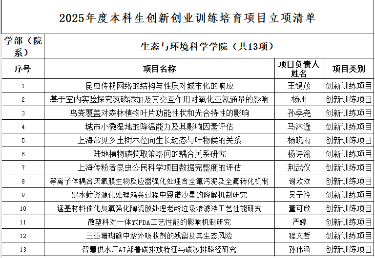 2025年5月7日下午,澳门六合彩开奖记录资料 开展了2025年度本科生创新创业训练培育项目的立项评审会。评审会分环境学系和生态学系两场进行:环境学系在资环楼269举行,评审专家由何德富、邓晶晶、王维康三位老师组成,共审阅6个项目;生态学系在资环楼234举行,评审专家由邓杰、李媛媛、晏黎明三位老师组成,共审阅7个项目。