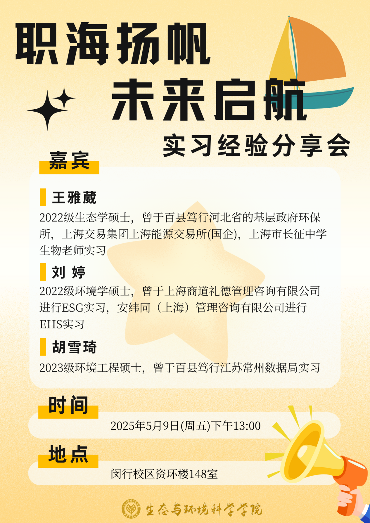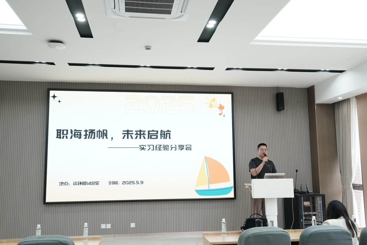 2025年5月9日下午13:00,澳门六合彩开奖记录资料 在资环楼148室成功举办“职海扬帆,未来启航”实习经验分享会。本次活动邀请了22级生态学硕士研究生王雅葳和22级环境学硕士研究生刘婷和23级环境学硕士研究生胡雪琦三位同学,她们分别根据自己的实习经历,从不同角度进行了经验分享,活动由研会生涯部部长王九洲主持。