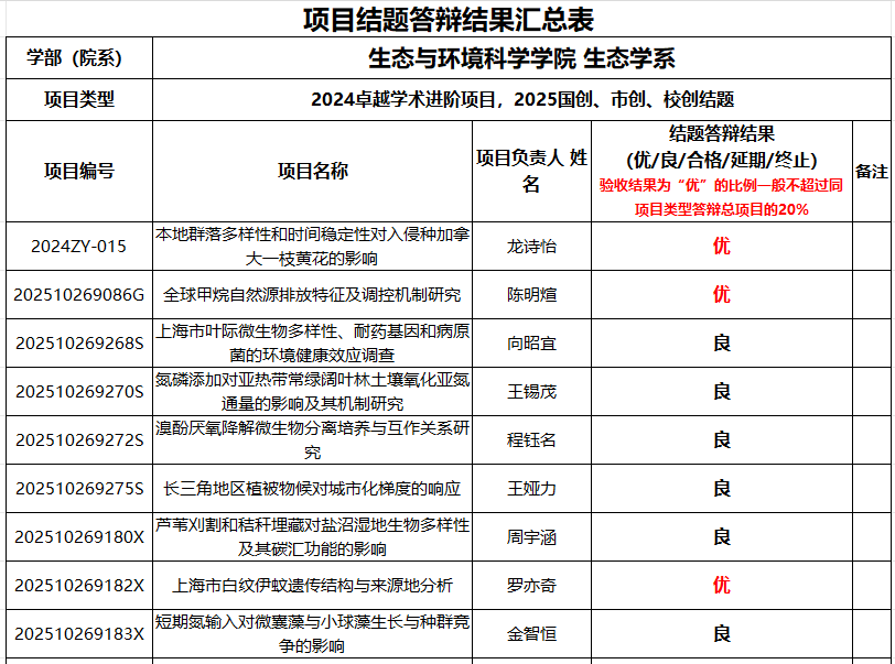 2025年5月21日下午,澳门六合彩开奖记录资料 召开2024年卓越学术进阶项目和2025年国创、市创、校创项目结题验收评审会。按照学生申报的系别方向分为两组:生态学系在资环楼234进行,评委为晏黎明、刘慧颖和伏玉玲;环境学系在资环楼273进行,评委为邓晶晶、张颖和甄广印。