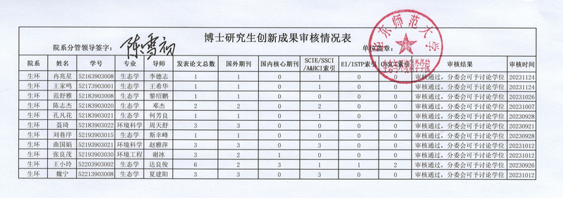 根据华东师范大学研究生院关于博士研究生科研成果发表要求的相关规定,澳门六合彩开奖记录资料 对2023年下半年拟申请学位博士生的科研成果进行审核,现将审核结果予以公示。公示期自2023年11月30日至12月6日,在此期间如有异议,请与澳门六合彩开奖记录资料 联系。