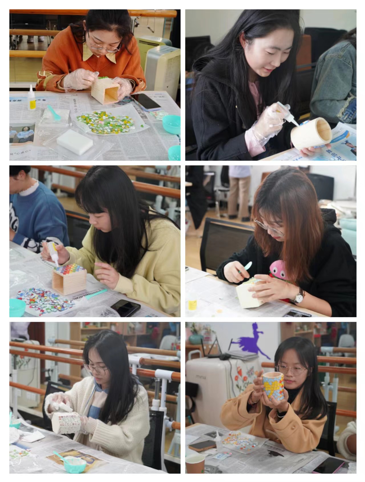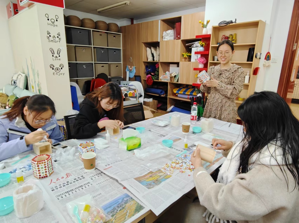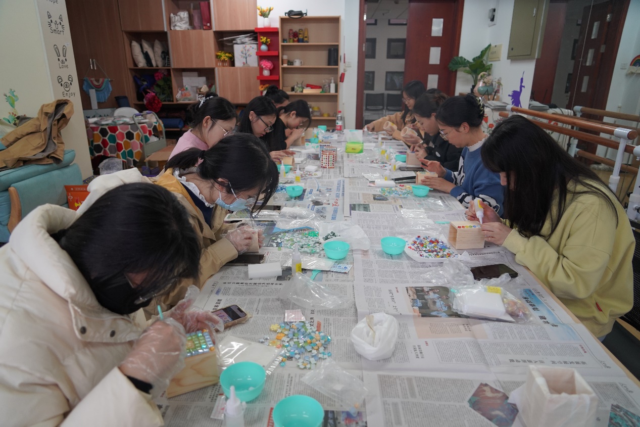 经过两个小时的制作,同学们将各种材料巧妙地结合在一起,DIY出一个个精美、独特的马赛克笔筒。本次活动的开展,不仅提升了同学们的动手能力和创新思维,使同学们感受来自学生社区的温暖,也可以让同学们在静心制作的过程中体会内心的宁静和专注,在活动中收获满满的成就感和幸福感。