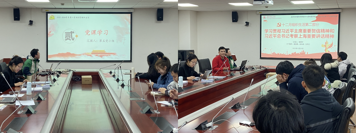 2021级环境学硕士研究生党支部于闵行校区资环楼345室开展十二月组织生活。本次活动以“学习新思想,争做新青年”为主题,包括“时政要闻分享、主题党课学习”两个环节。本次活动由第五党小组主持,全体党员到场参会。