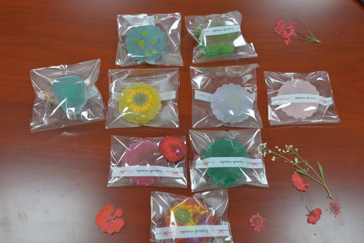 同学们精心挑选自己喜欢的干花,如玫瑰、薰衣草、菊花等,将它们巧妙地嵌入皂基中。在加热、搅拌、冷却的过程中,一块块色彩斑斓、香气扑鼻的干花手工皂逐渐成型。参与者们不仅享受到了动手制作的乐趣,还收获了一份份独一无二的艺术品。
