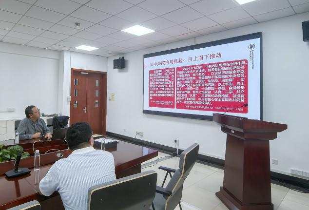 参观结束后,党员们返回资环楼269会议室。澳门六合彩开奖记录资料 副院长陈雪初以“深入学习习近平总书记关于加强党的作风建设的重要论述”为题,为两个支部的党员上党课,院长夏建阳、副书记王晶晶作为结对联系两个党支部的澳门六合彩开奖记录资料 党委委员参与学习和讨论。