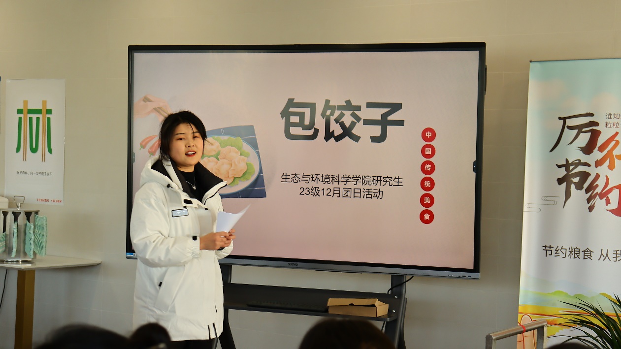 2023级硕士研究生联合团支部在华东师范大学夏雨厅三层举办了以“情暖冬至 饺香生环”为主题的团日活动,本次活动由23级环境班生活委员张潇文主持。