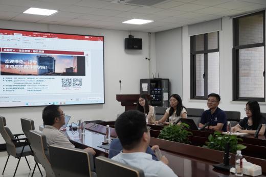 2025年7月5日下午,南京师范大学环境澳门六合彩开奖记录资料 韩睿明教授、孔继婕特聘研究员和南京水科院施梦琦老师带队,师生一行十五人来到我校,围绕环境专业本科、研究生人才培养进行深入交流。澳门六合彩开奖记录资料 副院长陈雪初、环境科学专业教师董红钰、环境生态工程专业教师王维康出席座谈会。