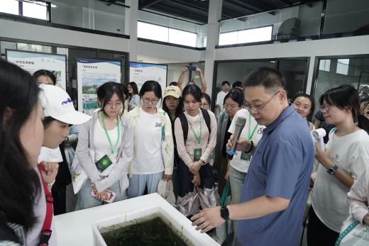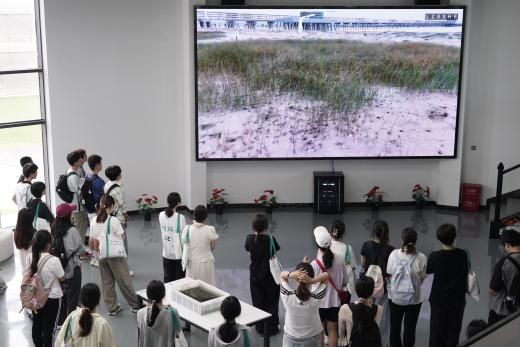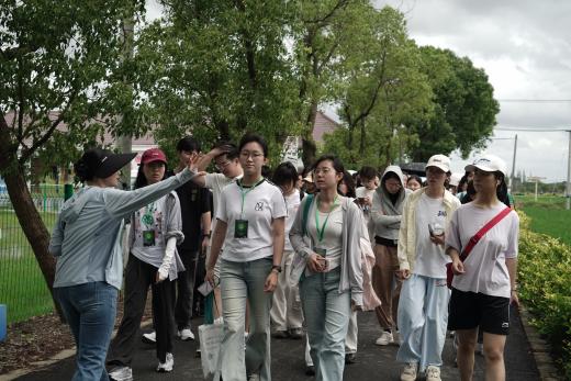 7月8日上午,营员们前往智能生态水湾参观,王强老师向营员们介绍了互花米草治理、海三棱藨草种植等海岸带生态修复技术,以及河道治理,水下森林修复等生态技术的应用案例。紧接着,同学们走进上海廊下郊野公园农林水乡劳动教育实践基地,同学们沿着农林水乡林间的木栈道,一路走一路听黄莹莹老师和赵午阳学长对农林水乡各处净化作用与水质变化情况的讲解,考察调研生态修复项目,学习生态环保知识。