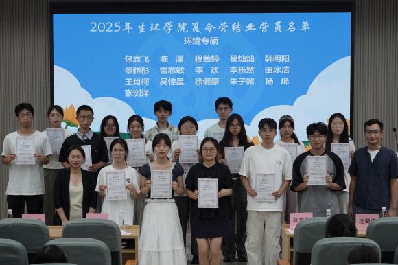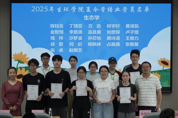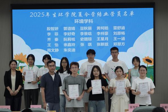 接着,陈雪初副院长与陈珉、秦荷杰、连璐诗老师一同为营员颁发结营证书,这一本本证书是对营员们努力与成长的见证。随后,生态学与环境学科的学生代表分别上台发表感言,分享在夏令营中的收获与感悟,言语间满是对知识的渴望和对未来的憧憬。闭幕式结束后,营员们展开自由交流,分享学习心得与体会。