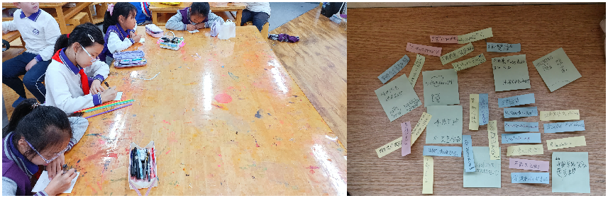 那么,我们能为保护北极熊做些什么呢?减塑行动、植树造林、环保出行...从细微之处做起,从身边的每一件事做起。同学们在便签纸上写下了自己构思的环保小标语,为本次环教课画上了句号。