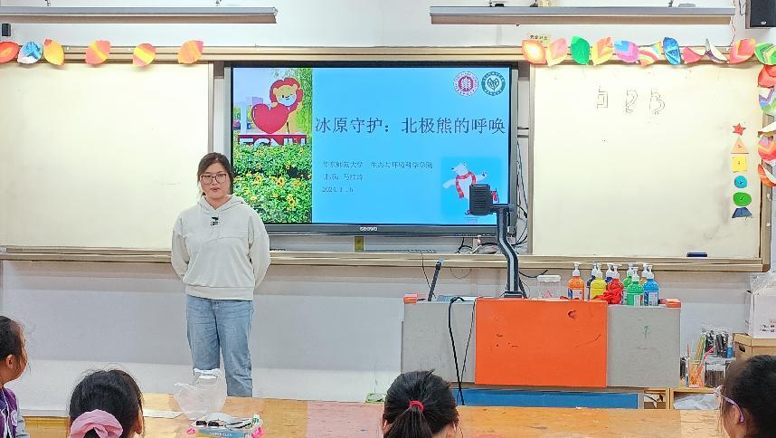 2024年11月5、6、7日下午,生态环境小课堂讲师团前往华东师范大学附属紫竹小学、永德学校、马桥民办小学开展以“冰原守护:北极熊的呼唤”为主题的环教课,担任本次课程的讲师为马江玲、张佳希、林亚轩、朱颜四位同学。